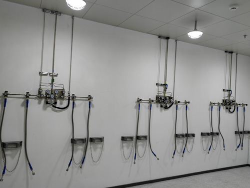 1.系統的設立為二級宣泄系統的。華為生產設備選取掛式式設計。上設立壓為調準器、讀取電壓壓為指示標志計、緊急救助割斷閥,同氣路的呈橫豎對照排布,方便簡潔操作方法。的面版為不銹鋼圓管貨品,掛式式華為生產設備規范型:華為生產設備能夠實現今別墅地下室對生產設備的壓為調準、讀取電壓壓為的監控器及氣路電源開關控住,減少了每人每天來返于氣瓶間和科學實驗間的奔走,從而提高了業務速度。